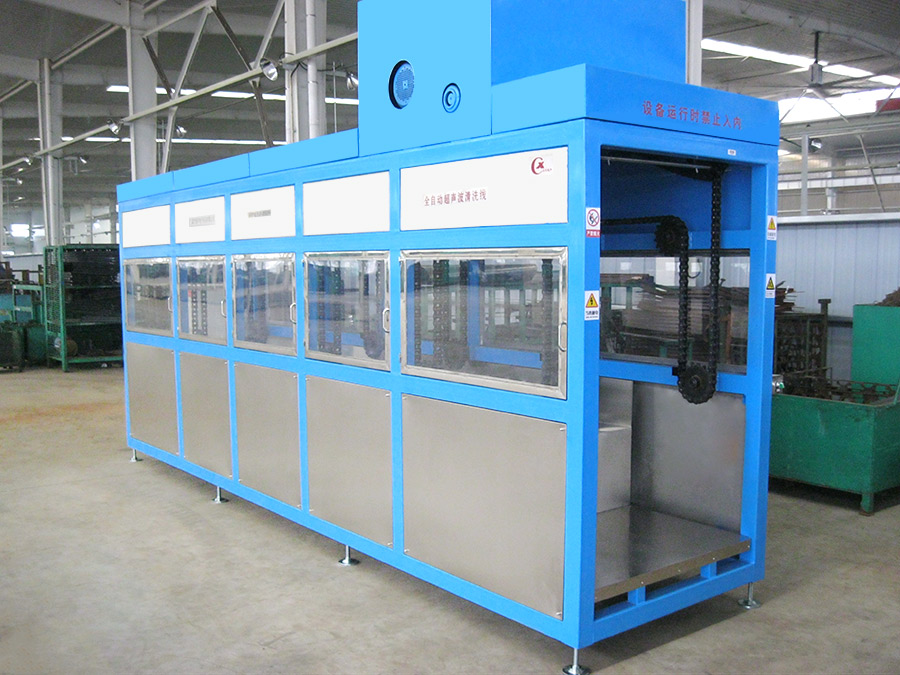 The equipment has automatic loading and unloading and corner system, ultrasonic cleaning system, automatic throwing, automatic overflow and oil separation device, spray system, automatic high-pressure water cutting system, and automatic drying system. The robot automatic conveying system uses high-precision linear guide rails with high-precision position detection sensors, and the robot can accurately grasp and place the workpiece. The automatic feeding and discharging and automatic heating system completely realizes unmanned intervention and automatic operation, which greatly reduces the labor intensity of workers. The advanced mist treatment system can condense and return the mist generated during cleaning, and the air will be discharged after being filtered and adsorbed by activated carbon.
