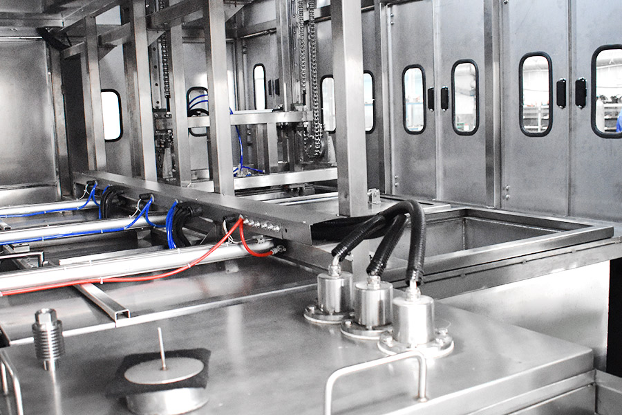該設備有自動上下料及轉角系統、超聲波清洗系統,自動拋動、自動溢流和油污分離裝置,噴淋系統、自動高壓切水系統、自動烘干系統。機械手自動輸送系統采用高精度直線導軌配合高精度位置檢測傳感器,機械手可以準確的實現工件的抓取和放置。自動進排液和自動加溫系統完全實現了無人干預,自動運行,很大程度上降低了工人的勞動強度。先進的霧氣處理系統可以將清洗時產生的霧氣冷凝回流,空氣經過濾和活性炭吸附后排出。
