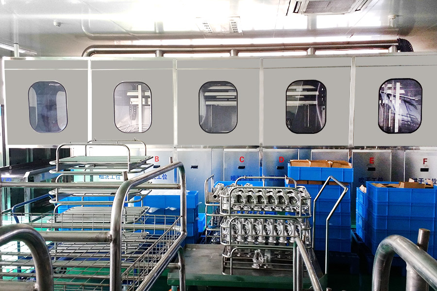 該設備有自動上下料及轉角系統、超聲波清洗系統,自動拋動、自動溢流和油污分離裝置,噴淋系統、自動高壓切水系統、自動烘干系統。機械手自動輸送系統采用高精度直線導軌配合高精度位置檢測傳感器,機械手可以準確的實現工件的抓取和放置。自動進排液和自動加溫系統完全實現了無人干預,自動運行,很大程度上降低了工人的勞動強度。先進的霧氣處理系統可以將清洗時產生的霧氣冷凝回流,空氣經過濾和活性炭吸附后排出。